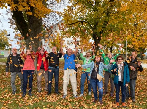 Früh morgens um 9 Ihr starteten 14 hoch motivierte Wanderer/innen Richtung Bissingen ins Lonetal. Bei angenehmen 13- 14°C und trockenen Wegen ging s Richtung Hohlensteinhöhle. Nur wenige Walker und Radler waren unterwegs. Der Wald links und rechts, der das Lonetal säumt, erscheint schon im INDIAN SUMMER.
